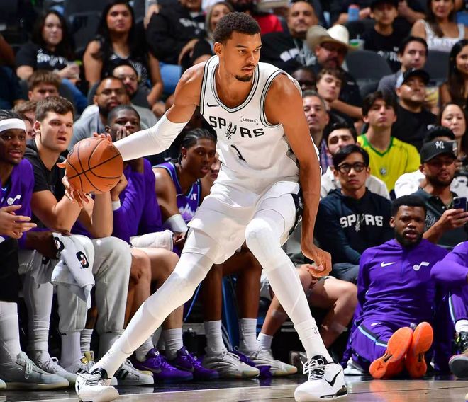 北京时间10月11日,圣安东尼奥马刺队迎来了第三场季前赛,此前两场分别是对阵广州男篮、热火队,此役对阵犹他爵士队,马刺队的新科榜眼迪伦-哈珀复出了,他将直面5号秀艾斯-贝利,这两大超星的对决还是被文班亚马的风采掩盖了,文班16分钟就拿到22+7+3的数据。