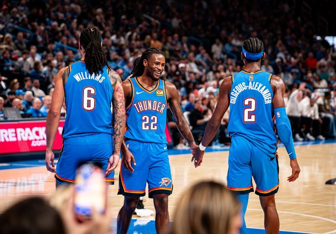 再来看一看雷霆队,状况是截然相反的,不仅赛季至今未尝败绩,更迎回了内线悍将切特,防守悍将多尔特,以及杰林-威廉姆斯。